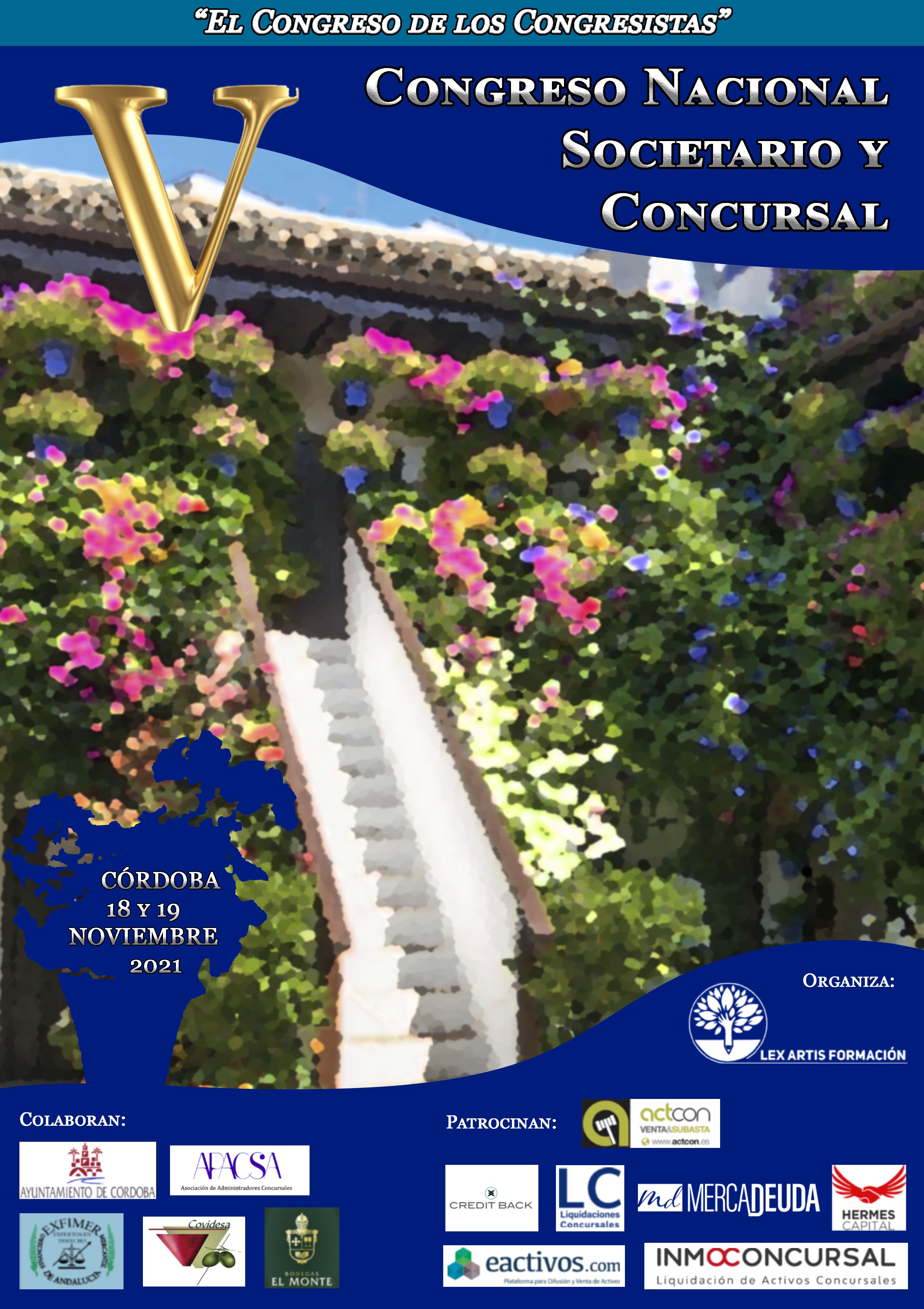 La pasada semana, los días 18 y 19 de noviembre, más de un centenar de profesionales -entre abogados, economistas y magistrados- se dieron cita en el Real Círculo de la Amistad de Córdoba con motivo del quinto Congreso Nacional Societario y Concursal organizado por Lex Artis Formación. Este evento, que se viene organizando en la ciudad de forma anual e ininterrumpida desde 2017, se ha desarrollado al mismo tiempo de manera presencial y online debido a la situación sanitaria derivada de la pandemia causada por la COVID-19.