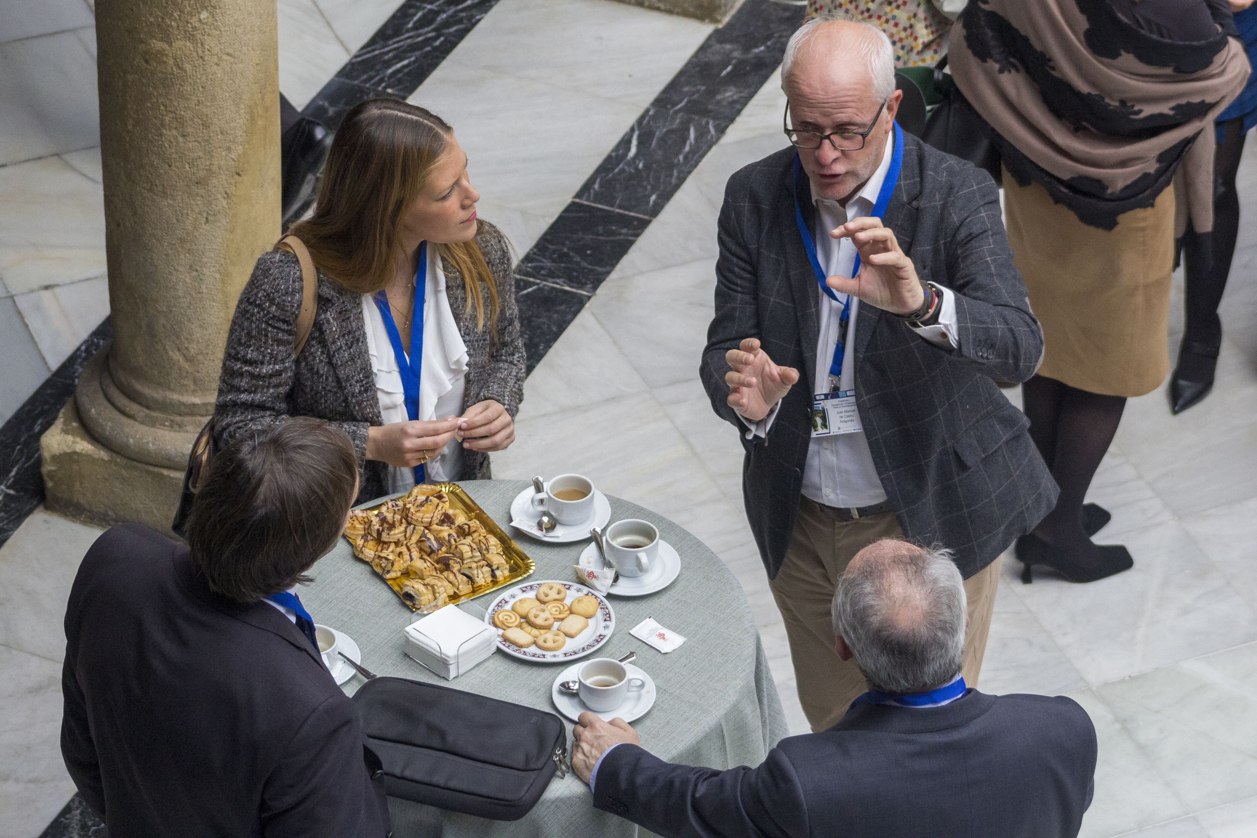 Al igual que el día anterior, sobre las once de la mañana los congresistas fueron, de nuevo, dirigidos al patio de las columnas del Círculo de la Amistad para disfrutar de otro café con pastas y dulces. Allí tuvieron otra oportunidad más para descansar y hacer networking entre ellos.