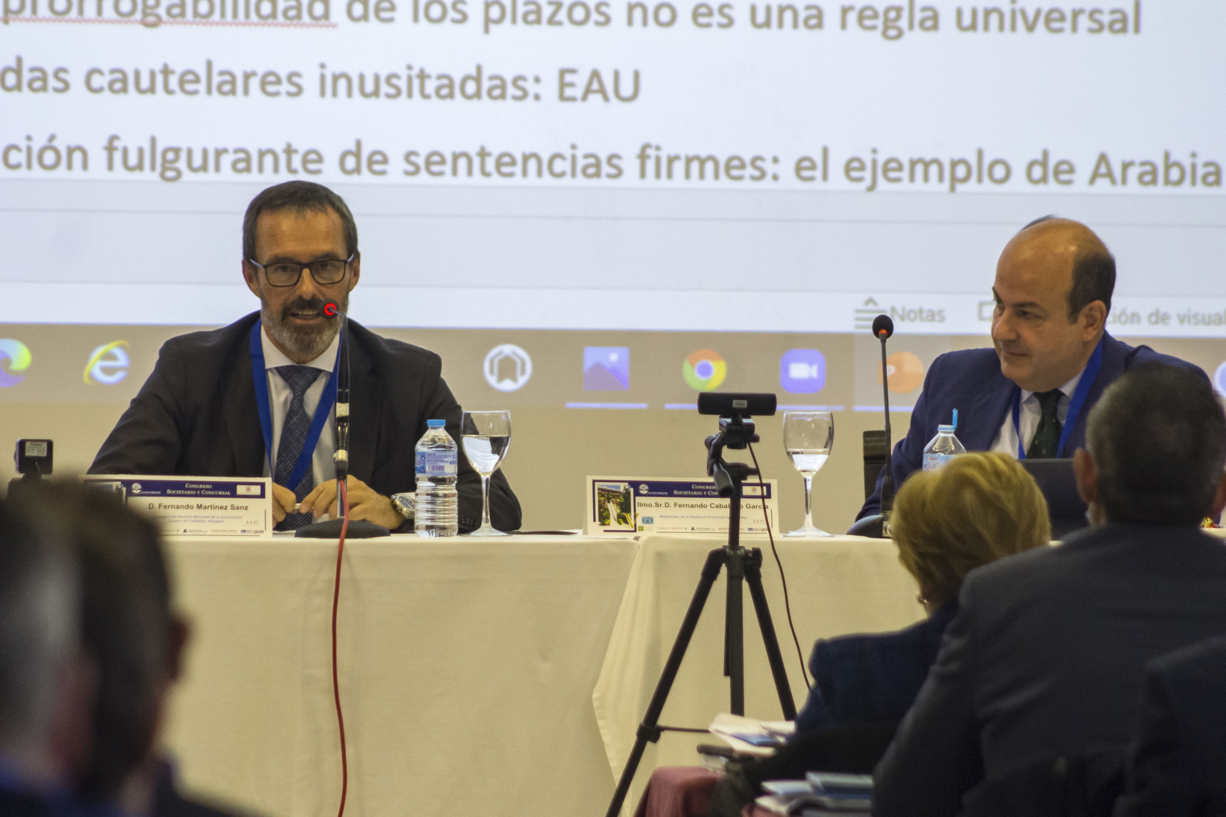 A las diez de la mañana, tras la entrega de acreditaciones y credenciales, comenzó en el salón Julio Romero de Torres de la institución cultural cordobesa el acto de apertura, que estuvo a cargo de su director académico, Fernando Caballero García, y del director técnico de la empresa de formación para profesionales, Francisco Fedriani Herrera. Tras este se dio paso a la conferencia inaugural. En ella el catedrático de Derecho Mercantil de la Universidad Jaume I de Castellón, Fernando Martínez Sanz, abordó “la cuestión de los contratos internacionales y algunos aspectos que deberíamos tener siempre en cuenta cuando entramos en este sector de la contratación mercantil internacional”. Así mismo, apuntó que “no es un drama tener que litigar fuera de España en materia mercantil”.
