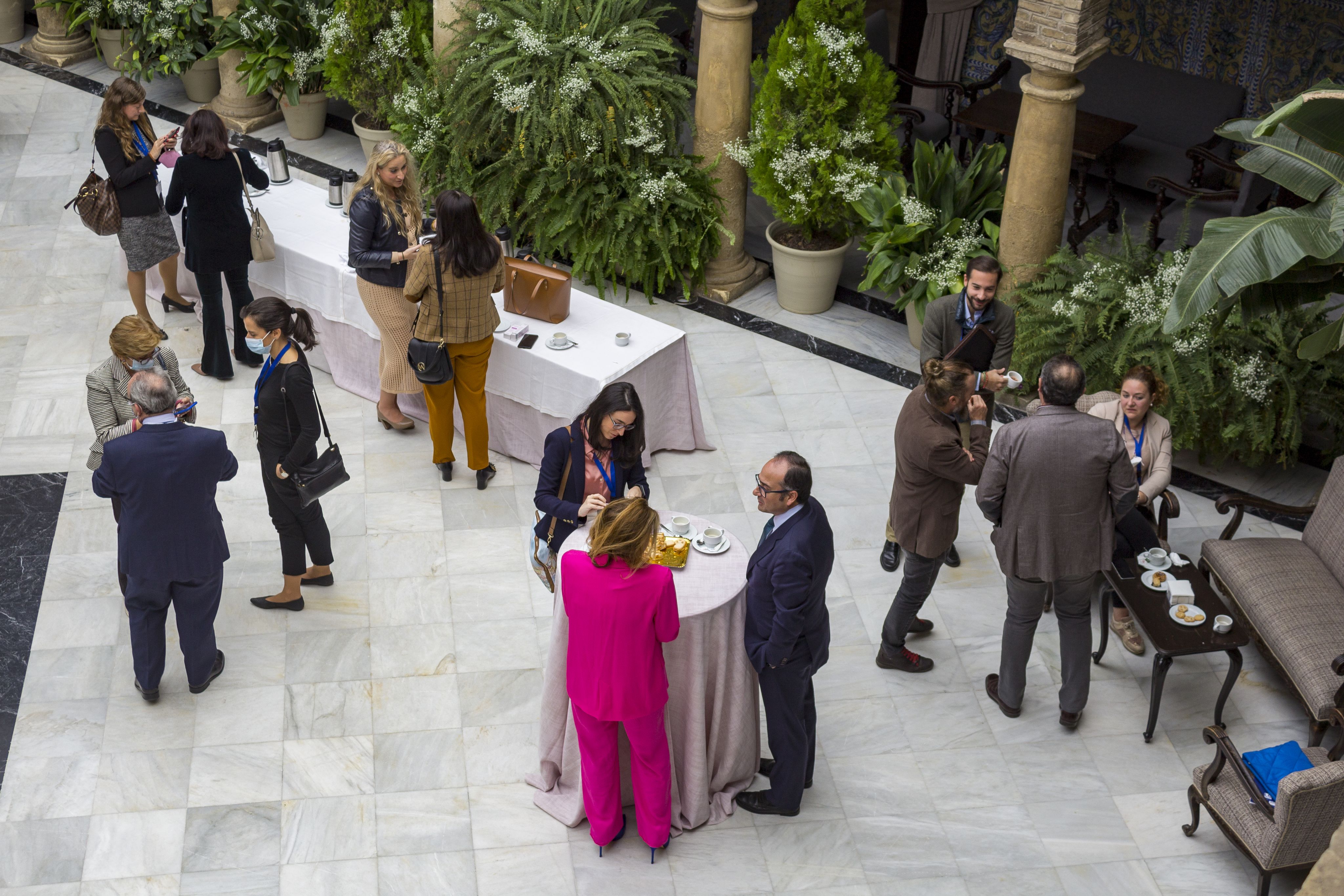 Acto seguido, los congresistas fueron conducidos al patio porticado en el que disfrutaron de un pequeño desayuno (compuesto por café, pastas y algunos dulces) en el cual pudieron intercambiar pareceres e impresiones además de disponer de un tiempo para hacer networking offline.